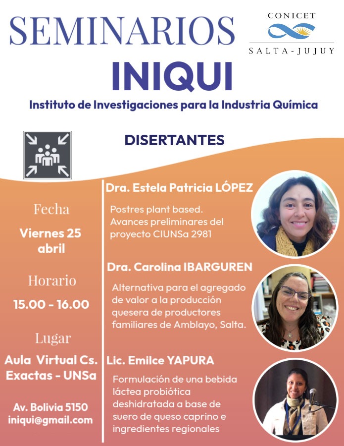 Con el objeto de difundir las tareas de investigación que se realizan en el INIQUI, el Instituto promueve periódicamente los Seminarios Internos, el mismo se desarrollo en el Aula Virtual de la Facultad de Ciencias Exactas de la Universidad Nacional de Salta, en esta ocasión disertaron: