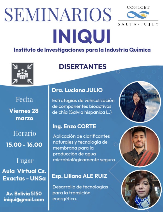 Seminario Interno del INIQUI 28 de Marzo de 2025. Disertantes: Dra. Julio, Ing. Corte e Ing. Ale Ruiz.